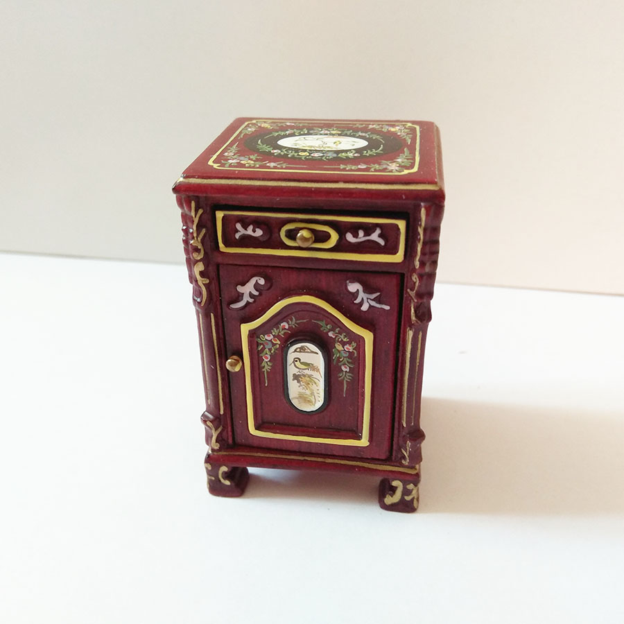 Оригинальная миниатюрная тумбочка с ручной росписью для кукольного дома или румбокса. Дверца открывается, ящичек выдвигается. Материал: дерево. цвет: красное дерево, ручная роспись