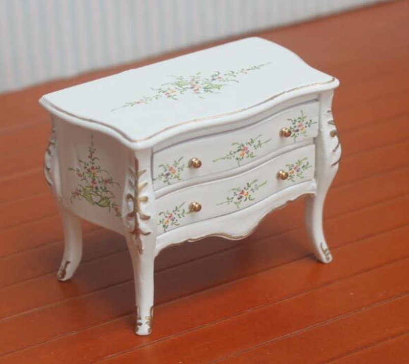 Миниатюра для кукол Тумбочка Роспись на белом