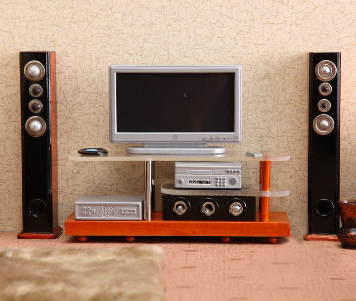 Музыкальный центр и телевизор на тумбе для кукольного дома