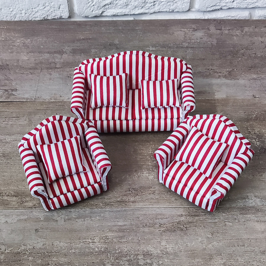 Мягкая мебель для кукол 2 кресла/диван Обивка полоска    - фото товара