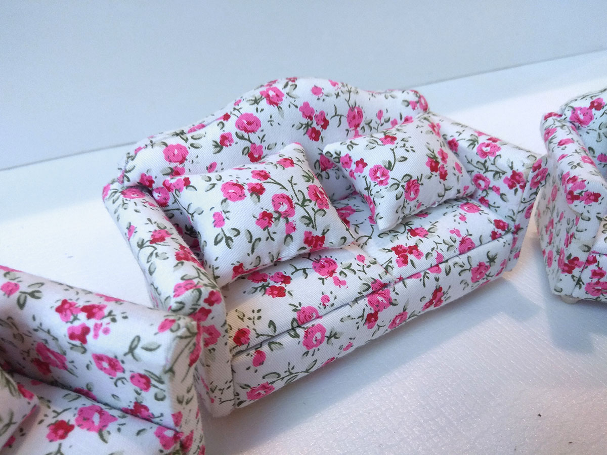 Набор мягкой мебели для кукол - диван и два кресла с подушками