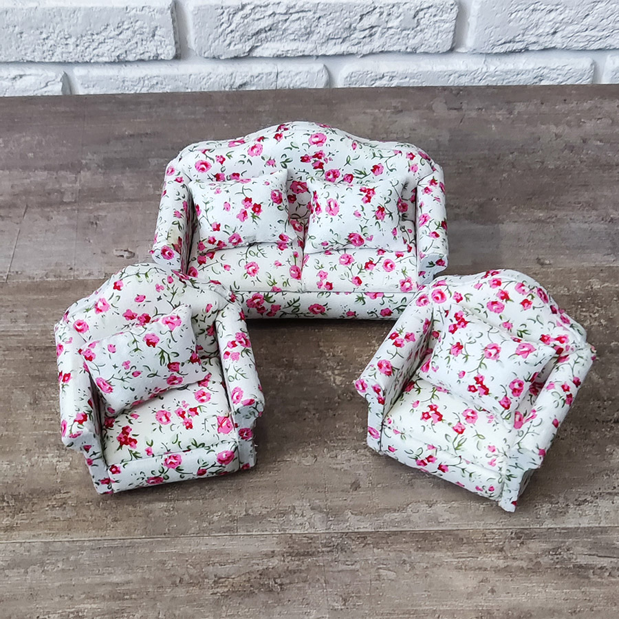 Мягкая мебель для кукол Обивка розовые цветочки   - фото товара