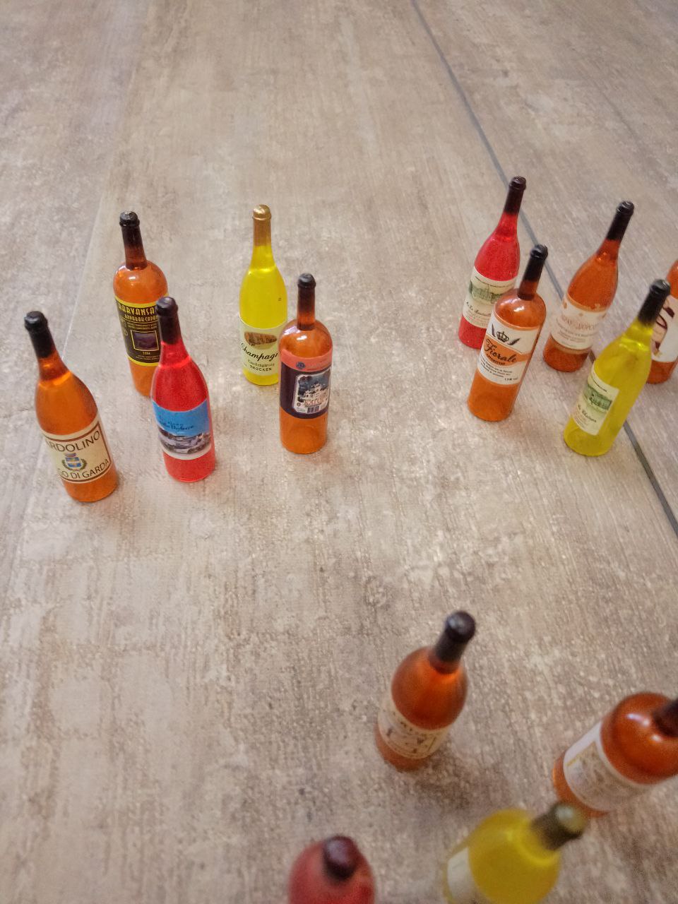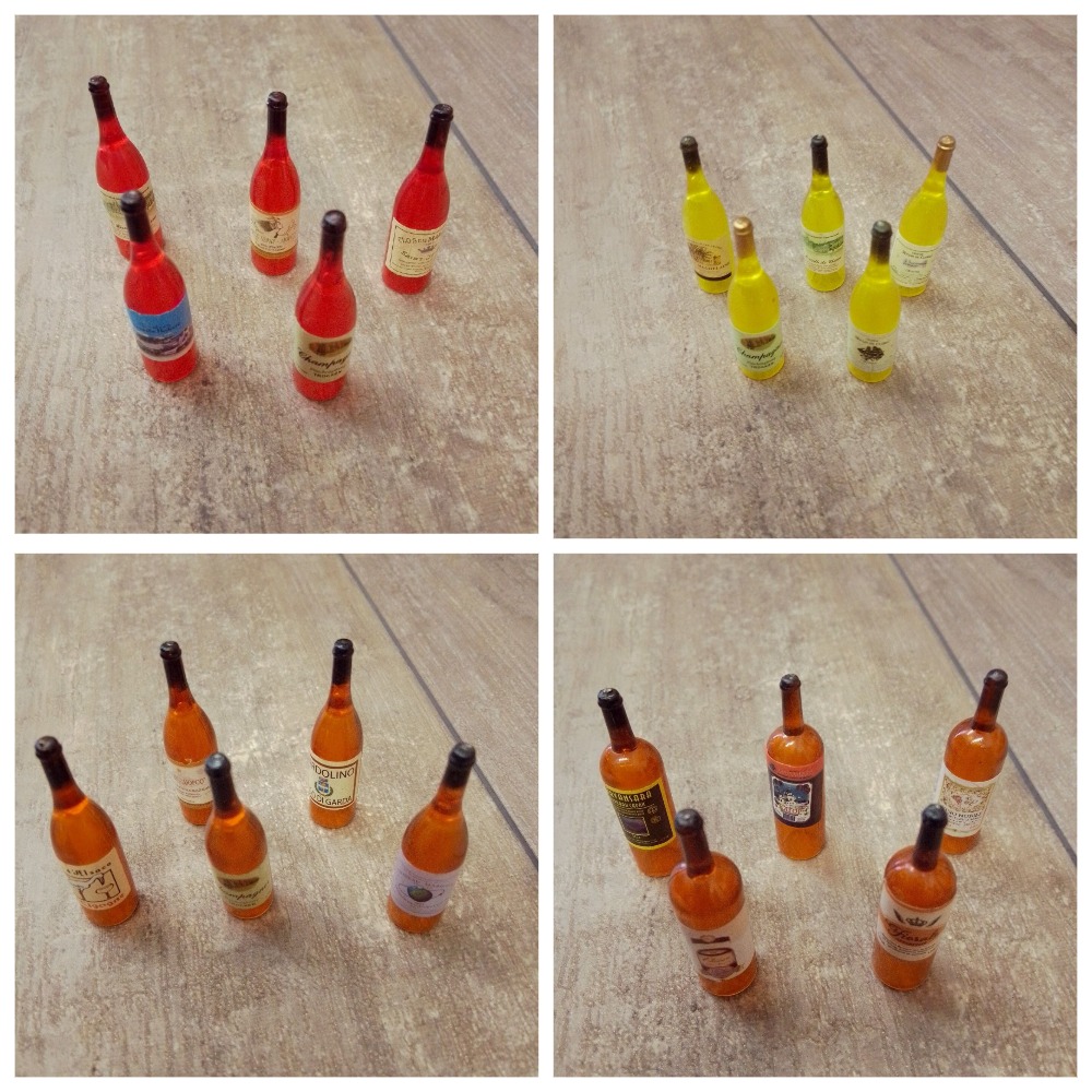 Миниатюрные бутылочки с вином для кукол.  Подойду для сервировки праздничного стола, кукольного бара или погребка в кукольном домике и румбоксе масштабом 1:12