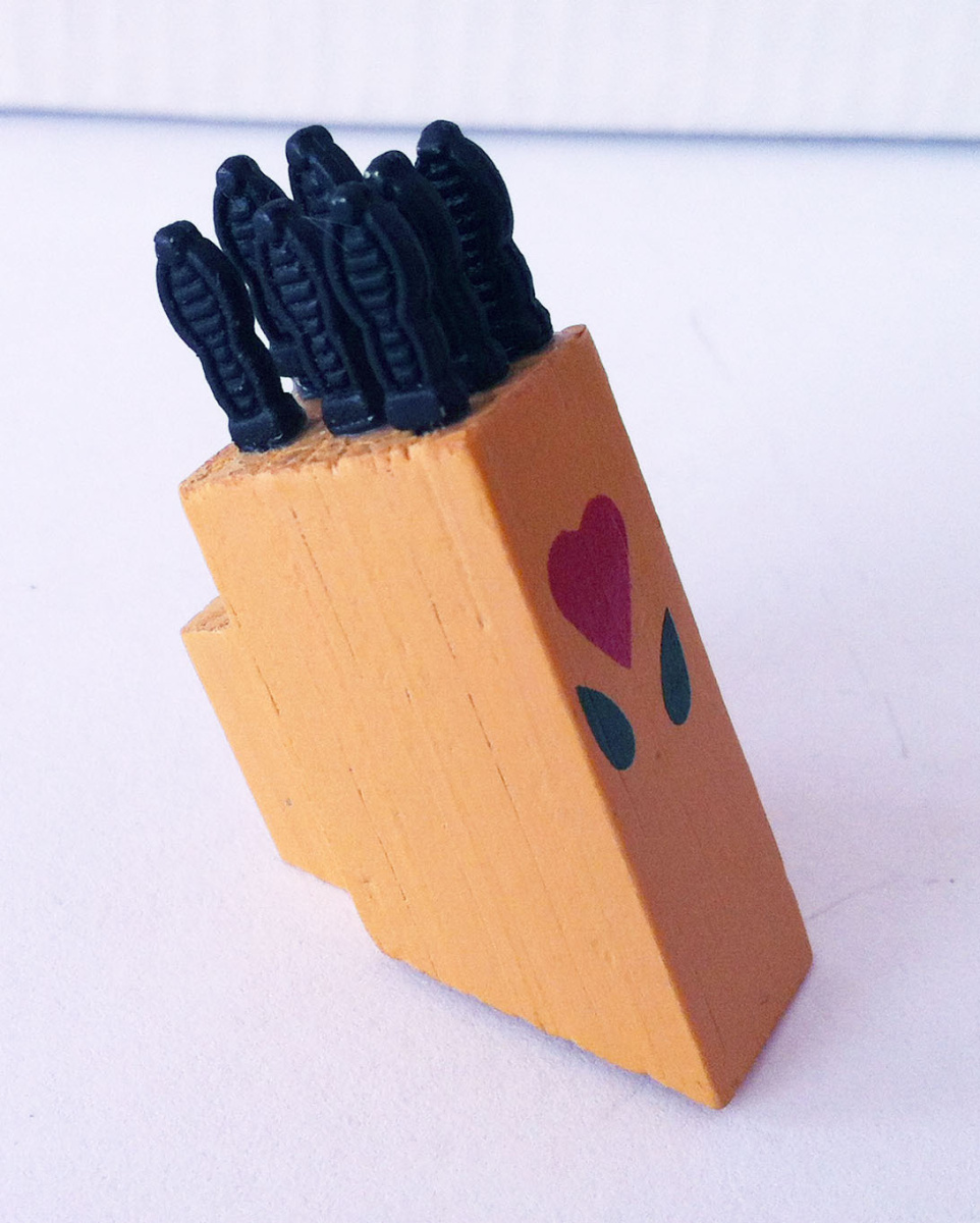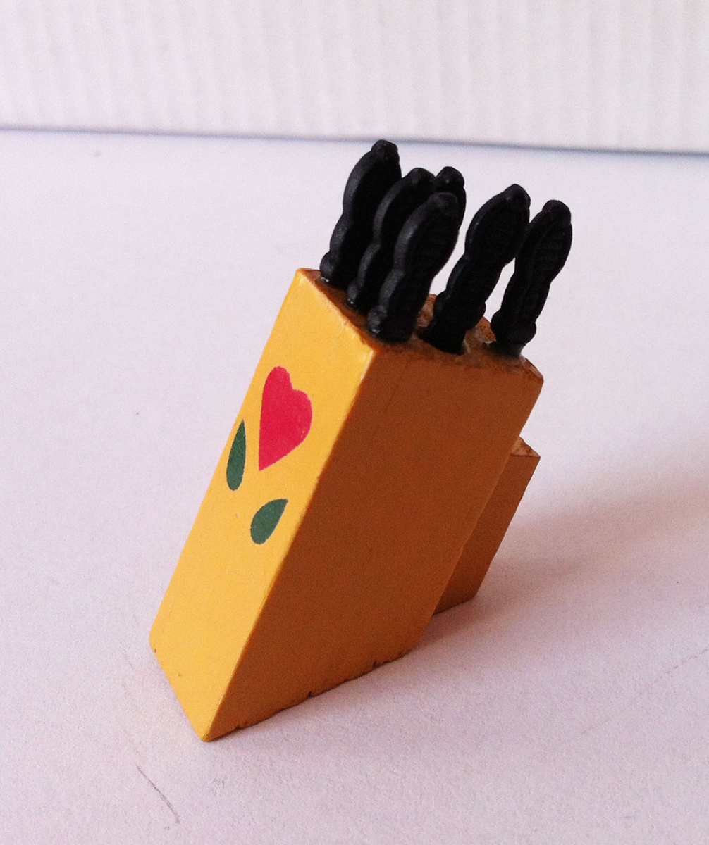 Ножи кухонные (7 штук) в деревянной подставке для кукол. Для куколок около 12 см
