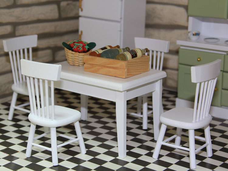 Стол и деревянные стулья для кукол - без них не обойтись при оформлении миниатюрной кухни или тематического румбокса
