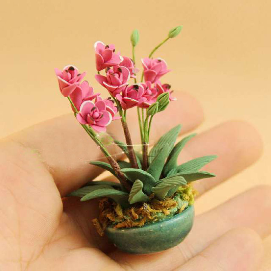 Орхидеи в керамическом горшочке для кукольного дома