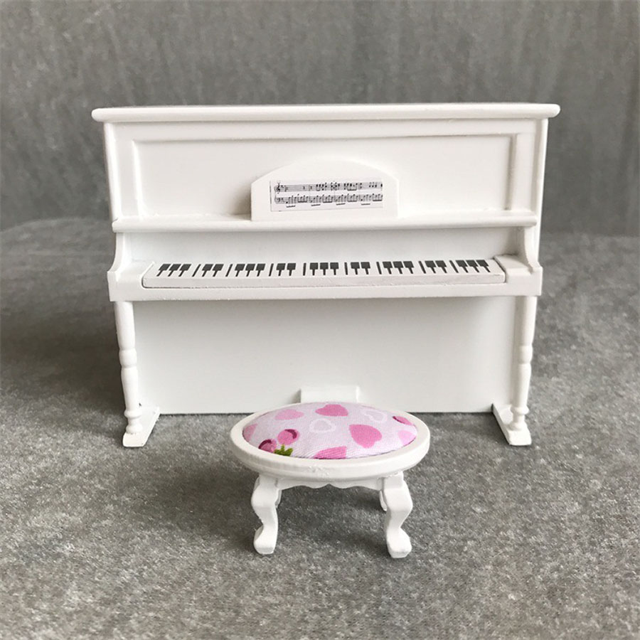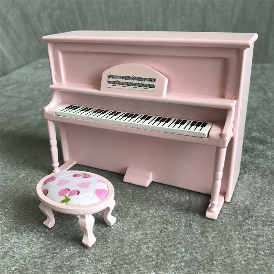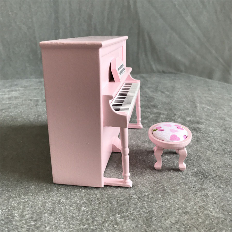 Пианино для кукол Белый/Розовый/Черный Миниатюра 1:12