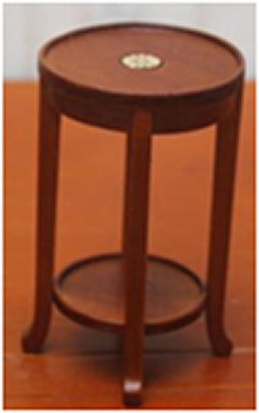 Миниатюрная деревянная двухэтажная подставка под цветы круглой формы для кукол. Дополнит интерьер кукольного дома или румбокса, оформленного в классическом стиле.