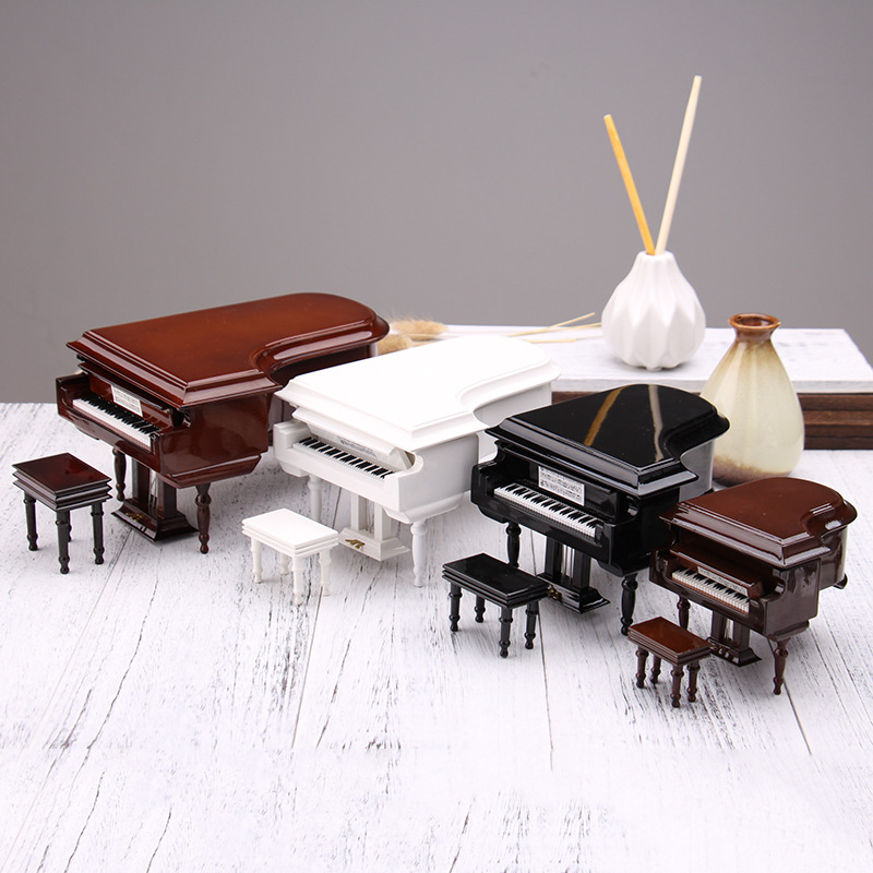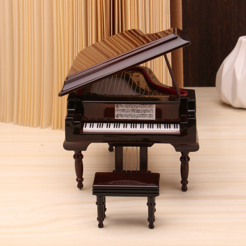 Миниатюрный деревянный рояль для кукольного домика, румбокса в комплекте со скамейкой. Масштаб 1:12,