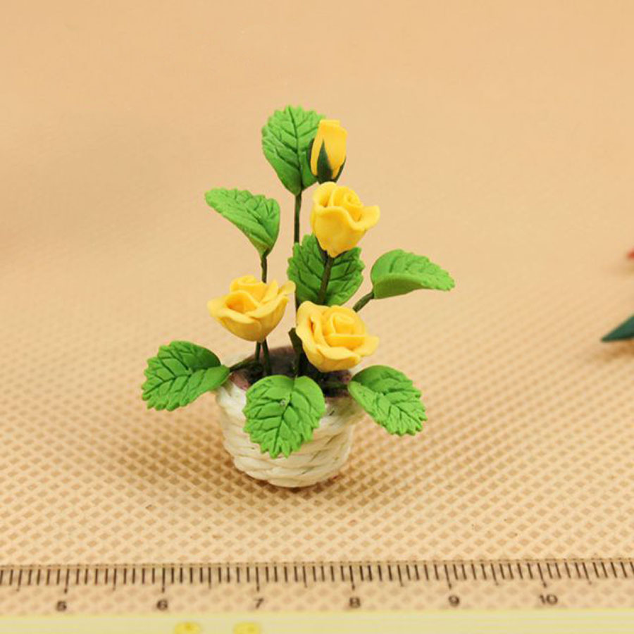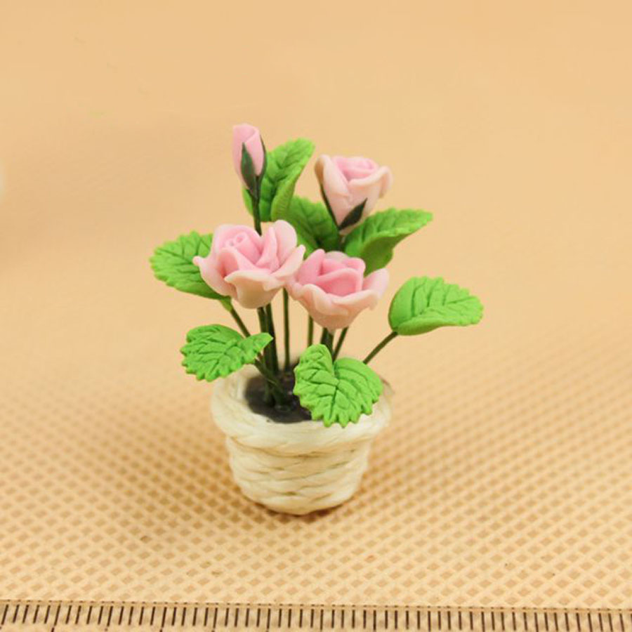 Розы в белом горшочке для кукольного дома 1:12 [24698]