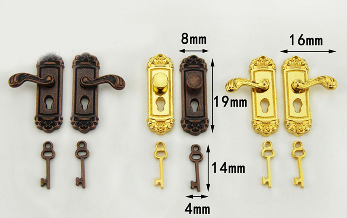 Необходимая фурнитура для оформления кукольного домика – дверные ручки разных моделей и расцветок в комплекте с крохотным ключиком. Для румбоксов и домиков для кукол.