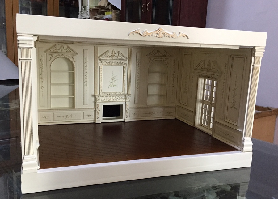 Шикарный коллекционный румбокс масштаба 1:12 с богатой отделкой, стилизация под дворцовый стиль. Для кукол размером около 12 см.