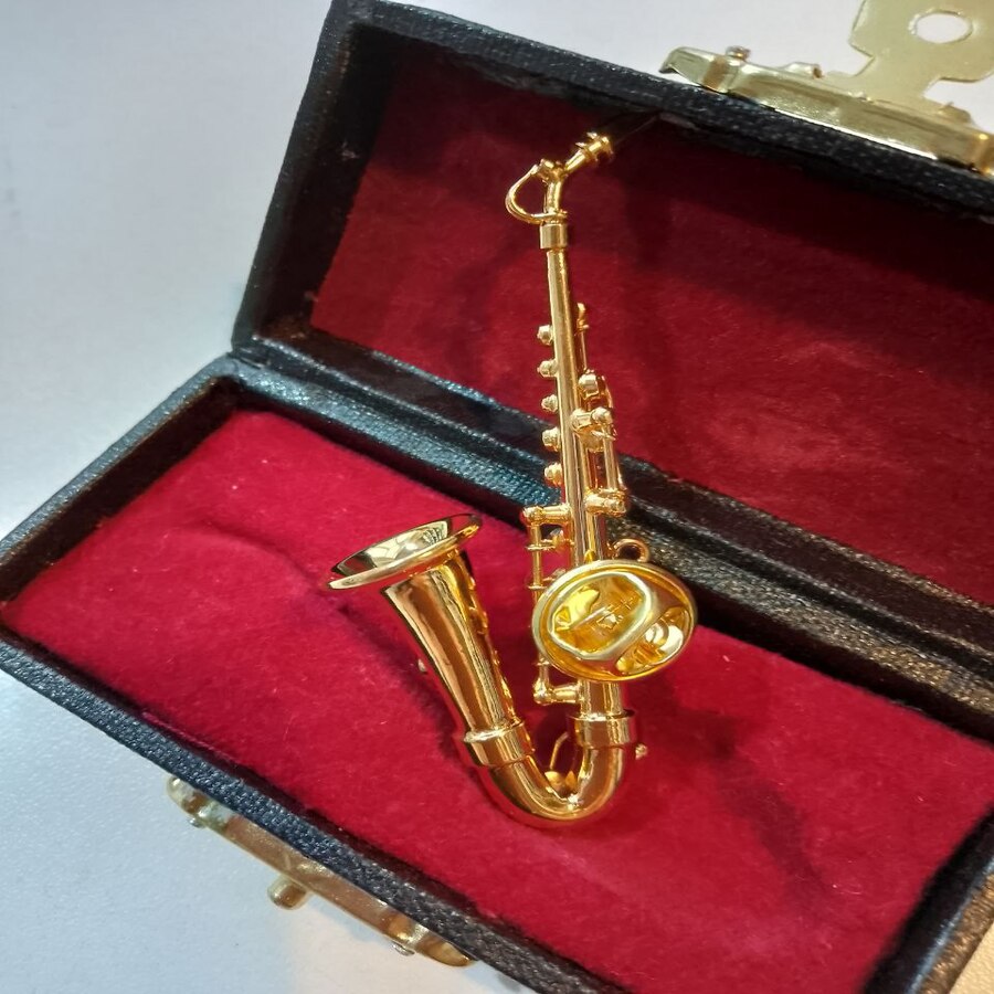 Размер саксофона  70*20*10 мм, размер футляра - 80 х 35 х 25 мм