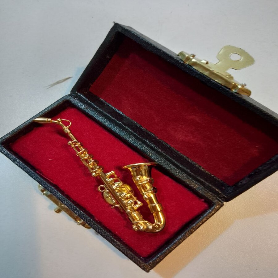 Миниатюрный саксофон-элегантный аксессуар для кукольного домика или румбокса.