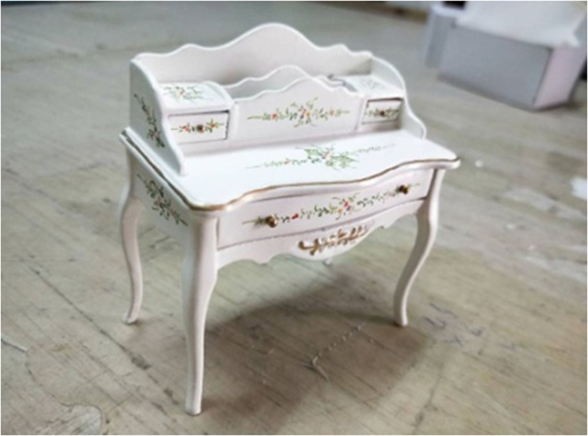 Секретер белый резной для кукол Миниатюра 1:12   - фото товара
