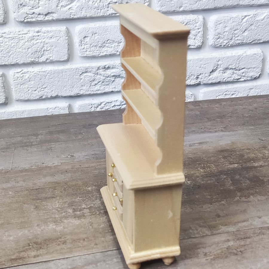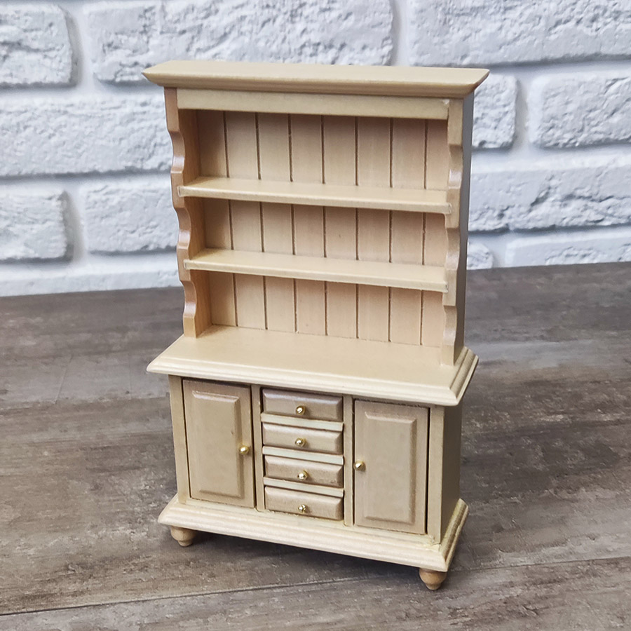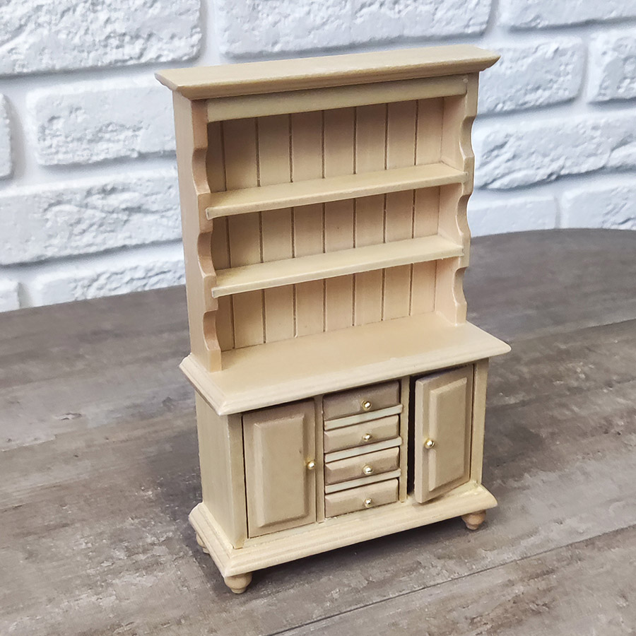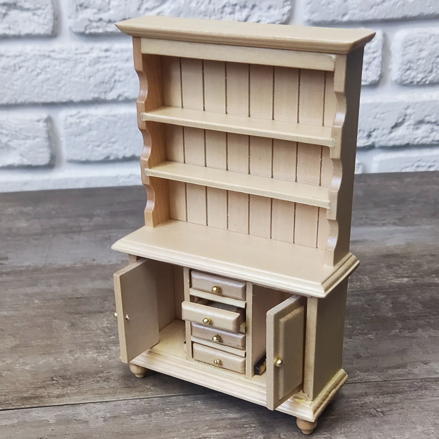 Миниатюрный деревянный шкаф с открытыми полками украсит кукольную гостиную, на него можно расставить книги, вазы, фоторамки и многое другое. Также такой шкаф подойдет и для кукольной кухни: внизу можно хранить продукты питания, наверху выставить красивую посуду.