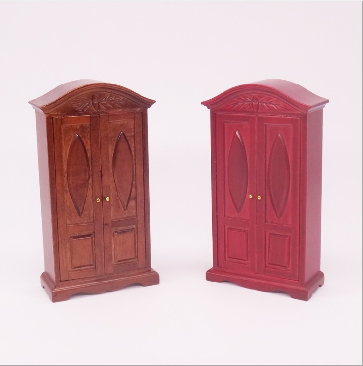 Миниатюрный деревянный  шкаф с полками украсит кукольную гостиную или спальню.