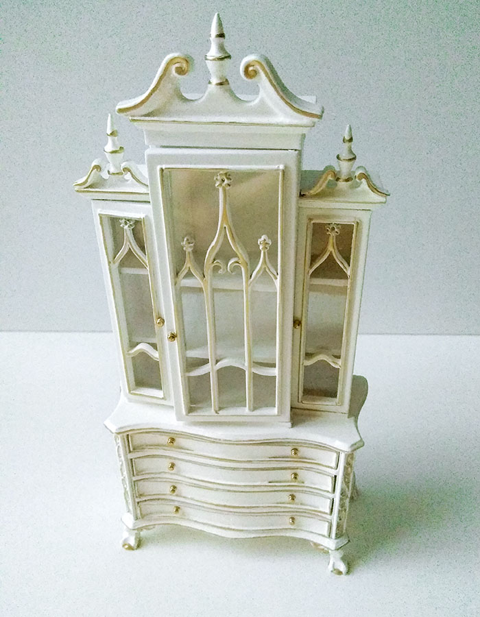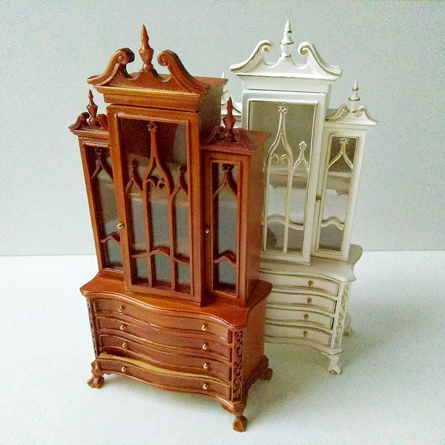 Элегантный шкаф-комод для кукол из натурального дерева станет достойным дополнением столовой, гостиной или кабинета в кукольном доме.  За прозрачными дверцами будет хорошо видна посуда, книги и другие предметы интерьера.