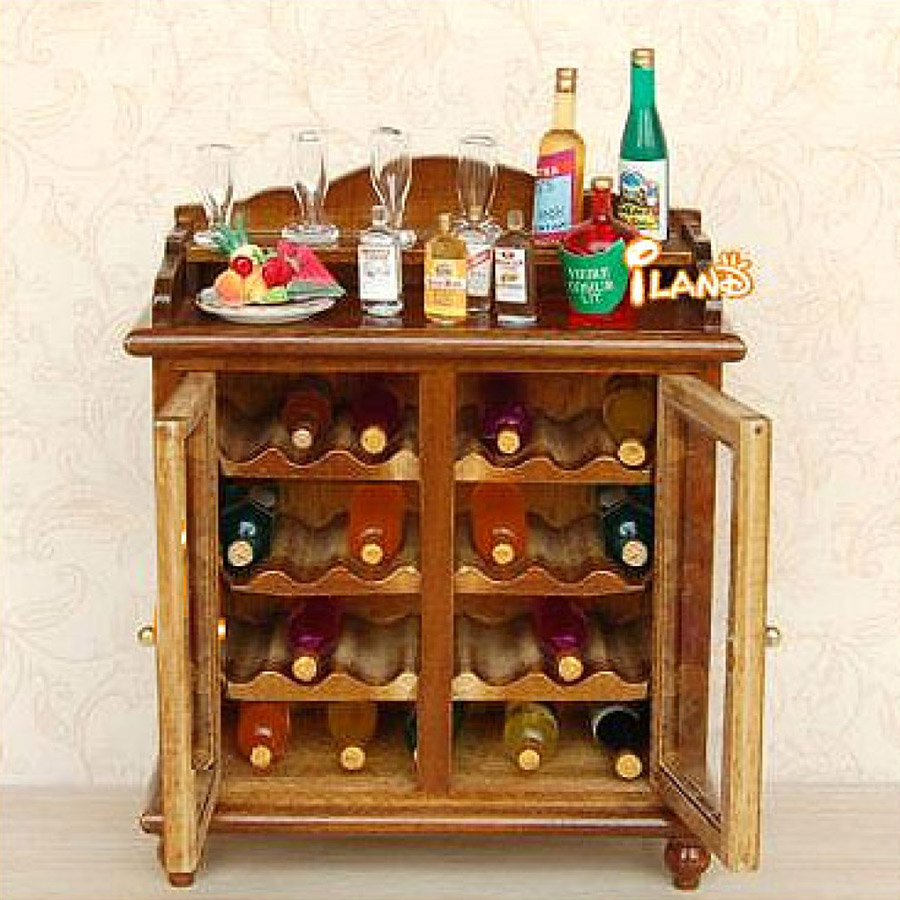 Винный шкафчик для кукольного дома или румбокса. Дверцы открываются.