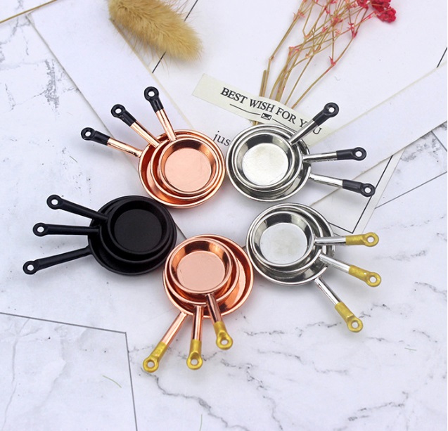 Крохотные сковороды для кукольной кухни. Такая посуда подойдет для оформления кукольных домиков или румбоксов масштабом 1:12 (для куколок ростом около 12 см)