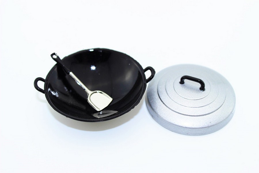 Сковорода вок с крышкой и лопаточкой для кукольной кухни
