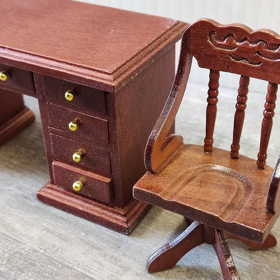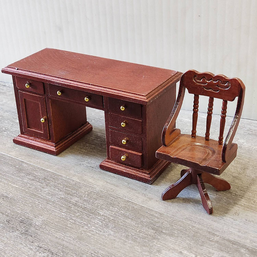 Рабочее место для кукольного кабинета - стол со множеством ящичков и стул. Ящички выдвигаются, дверца открывается.