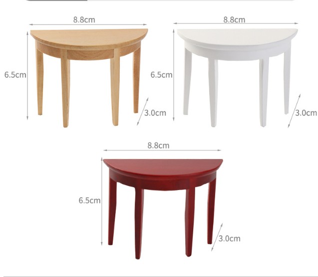Миниатюрный консольный полукруглый столик цвета махагон для кукольного дома или румбокса.