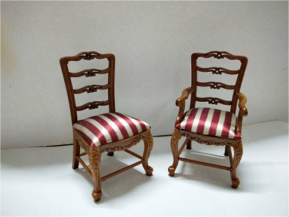 Стул для кукол резной с полосатой обивкой   - фото товара