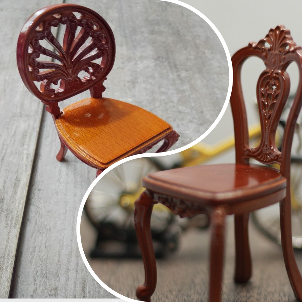 Стульчики с резными спинками для кукольного дома в миниатюре или румбокса масштабом 1:12 (для куколок высотой около 12 см). Подойдет для комнат, кухни