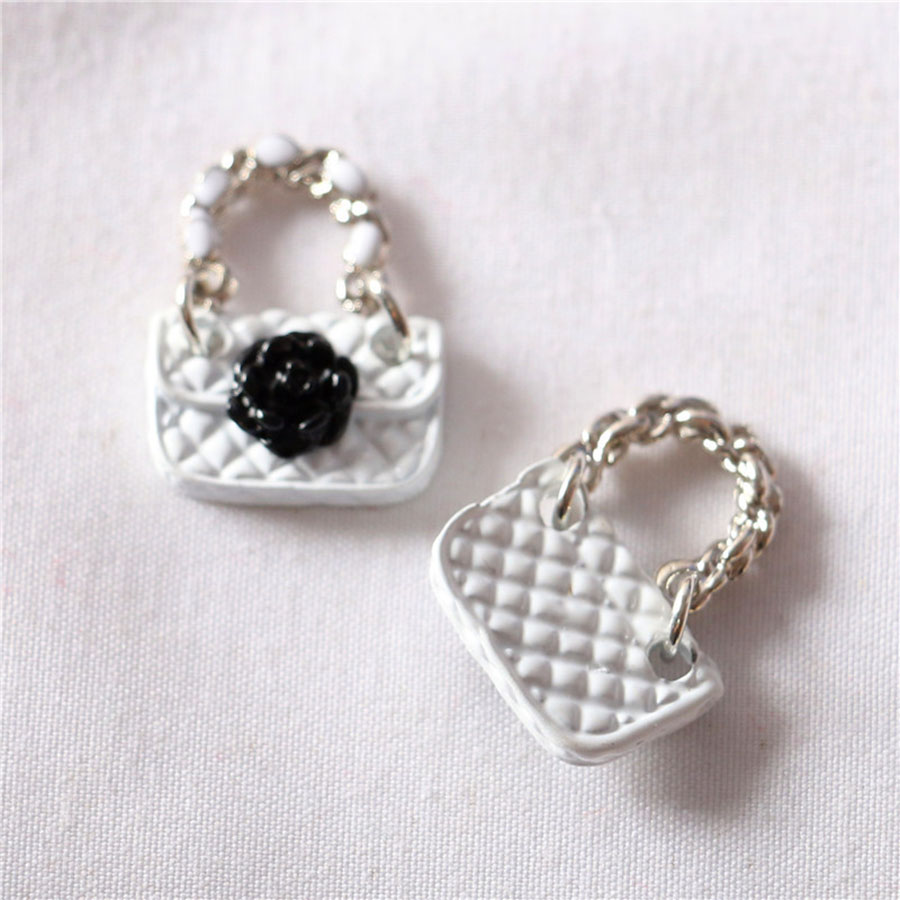 Миниатюрная женская сумочка для куколок ростом около 12 см. Сумочка с короткой ручкой и декором в виде цветка - для оформления румбоксов и кукольных домиков. масштаб 1:12
