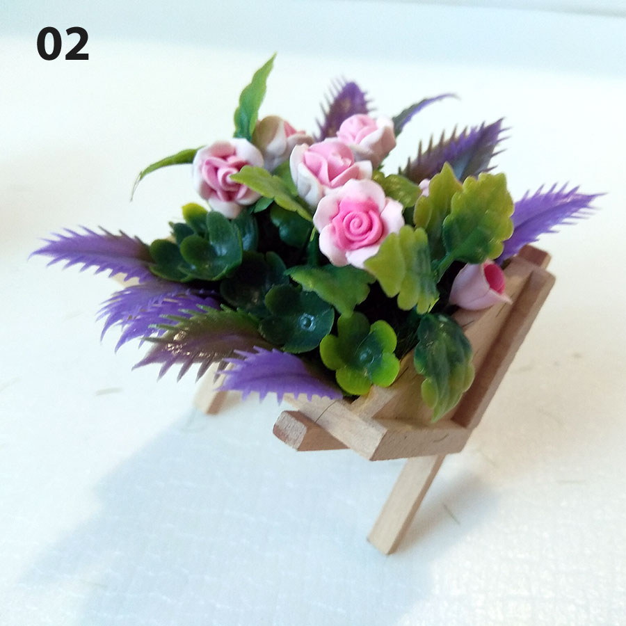Цветы в деревянной подставке для кукольного дома