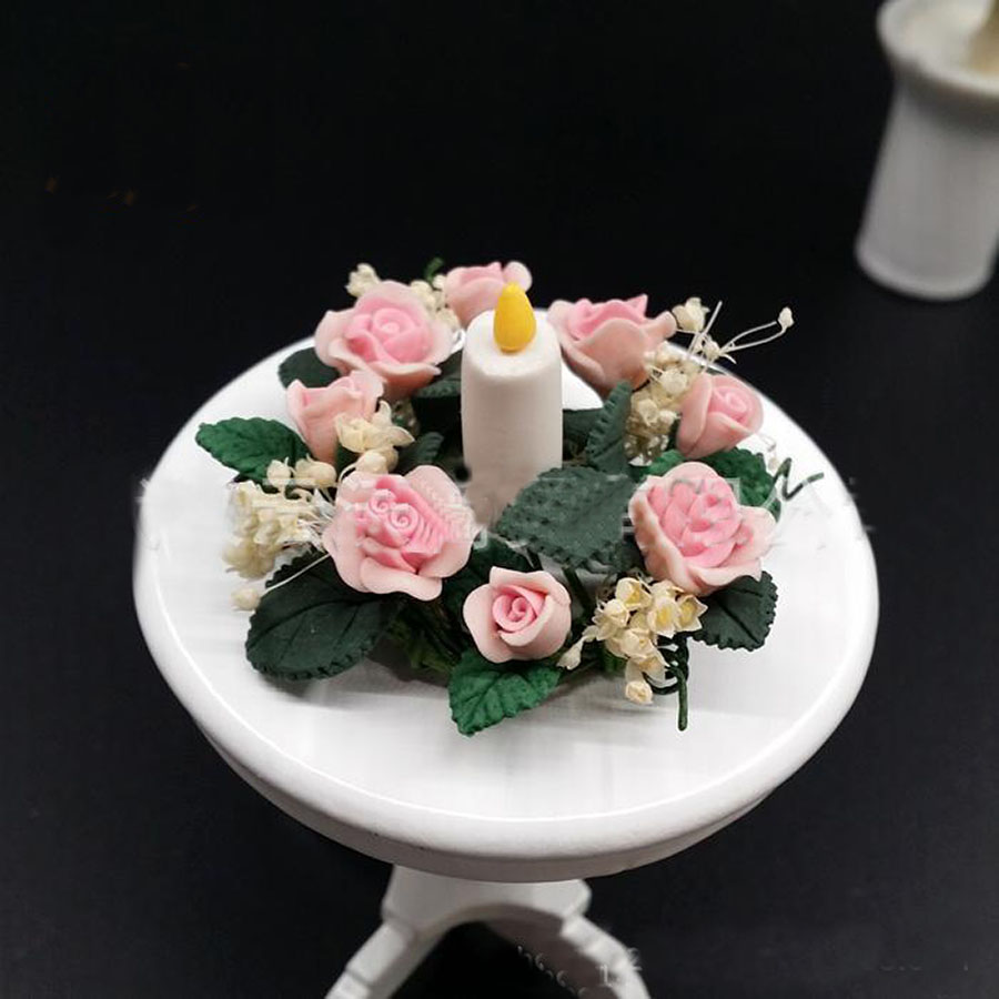 Цветы в венке со свечой для кукольного дома 1:12   - фото товара