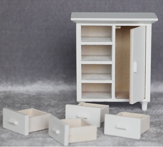 Миниатюрная тумба (комод) с ящичками для кукольного дома или румбокса. Масштаб миниатюры 1:12. Такая деревянная тумбочка подойдет для кухни, столовой, спальни, детской или ванной комнаты