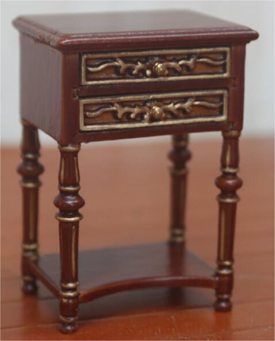Миниатюрная кукольная тумбочка с двумя выдвижными ящичками, украшена резьбой и позолотой. Коллекционная деревянная мебель ручной работы премиум класса для для оформления кукольного дома или румбокса.