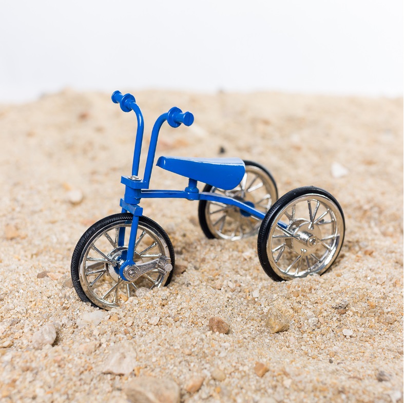 Металлический велосипед в миниатюре - почти как настоящий. Масштаб 1:10. Замечательно впишется в оформление  вашего кукольного домика или окружающей территории. Такой велосипед также подойдет в качестве достойного аксессуара для рукодельной куклы или игрушки.