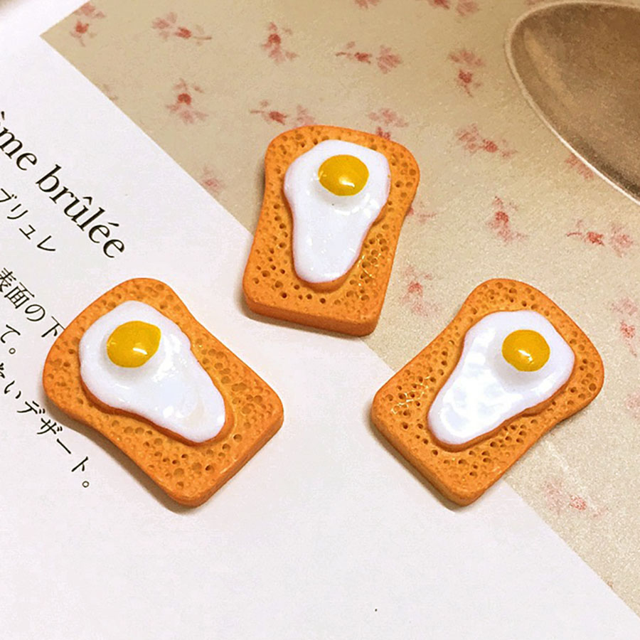 Миниатюрная яичница-глазунья на хлебном тосте размером 21х15 мм. Для оформления кукольных домиков и румбоксов