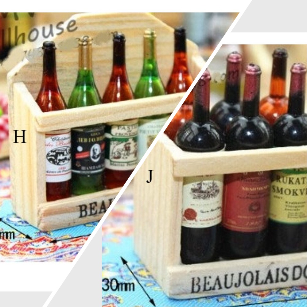 Миниатюрные бутылочки с вином в деревянном ящичке – для оформления тематического румбокса или кукольного домика в масштабе 1:12.