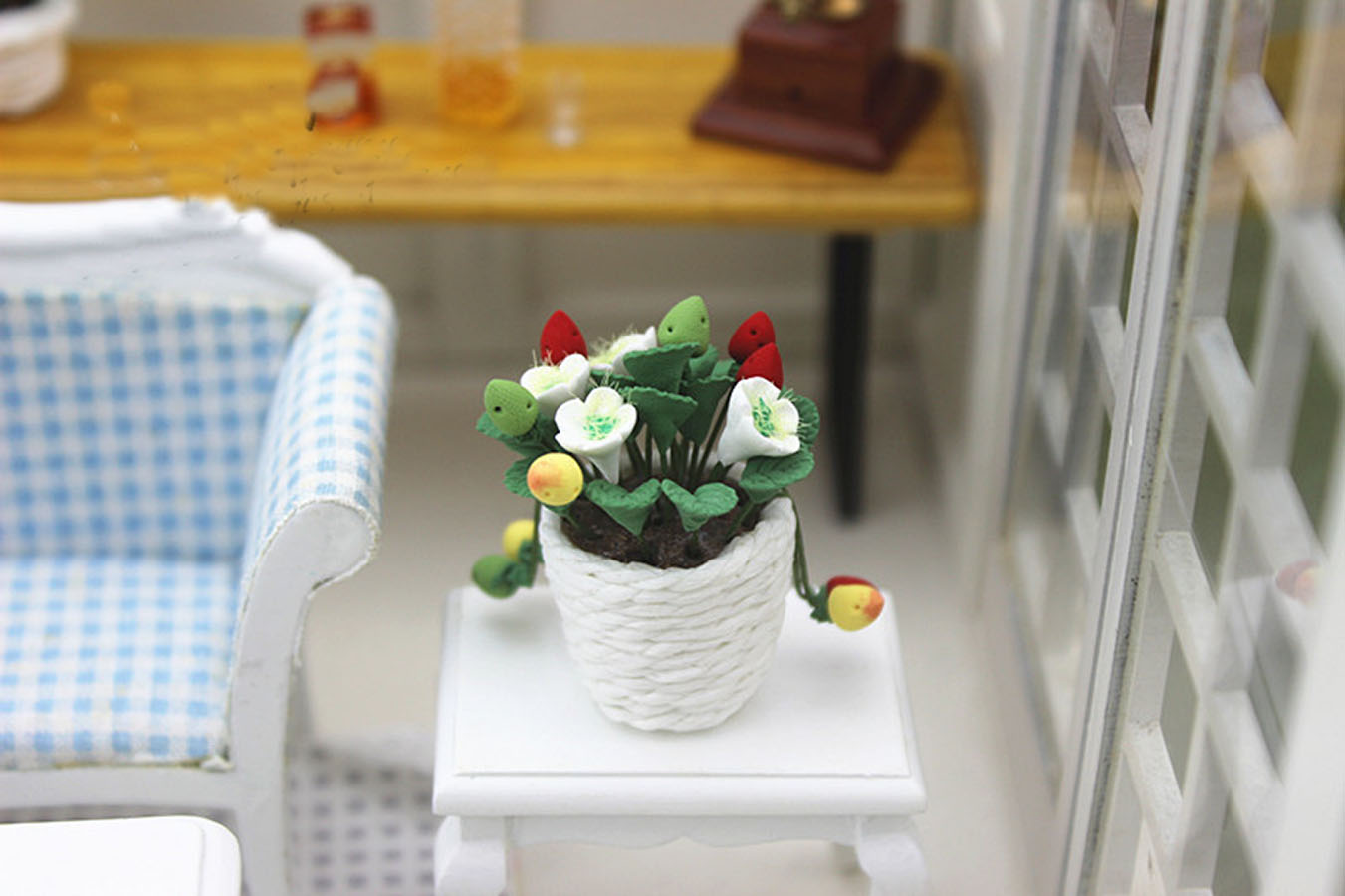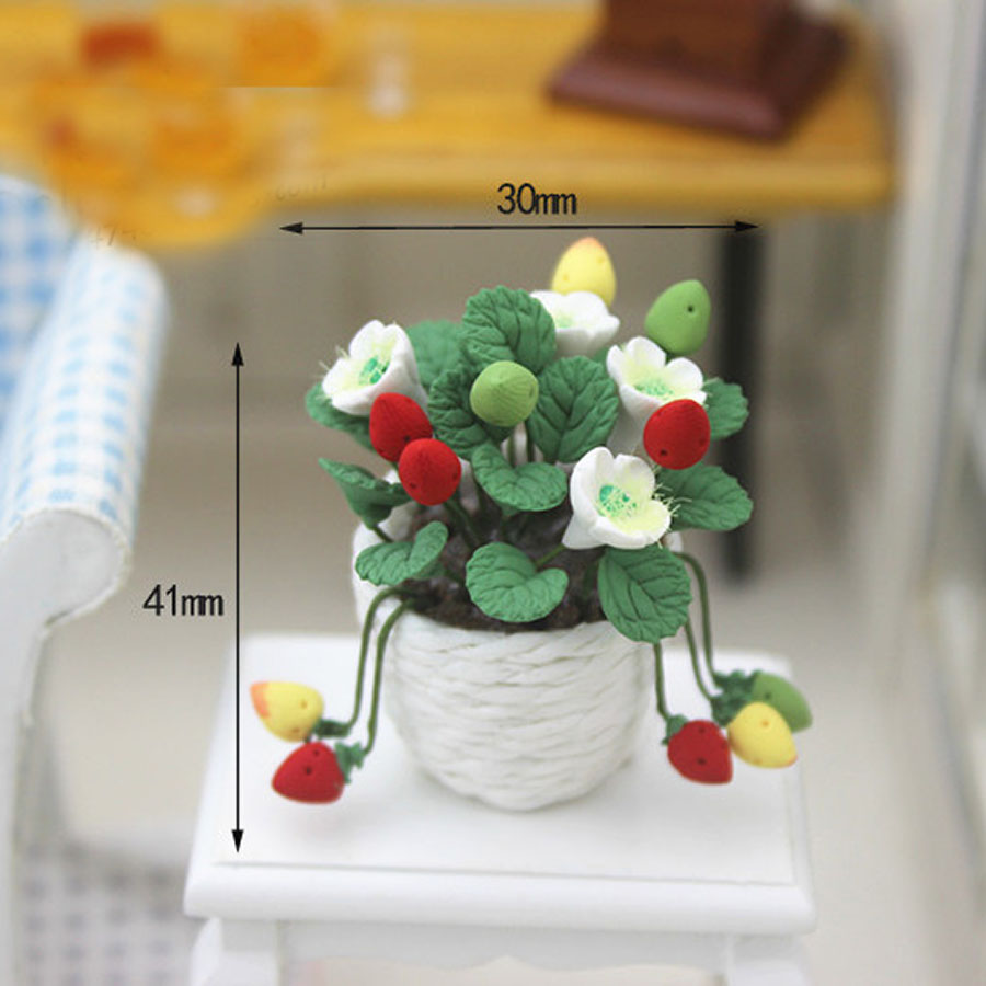 Миниатюрный горшочек с кустиком земляники украсит кукольный домик или миниатюрный садик.