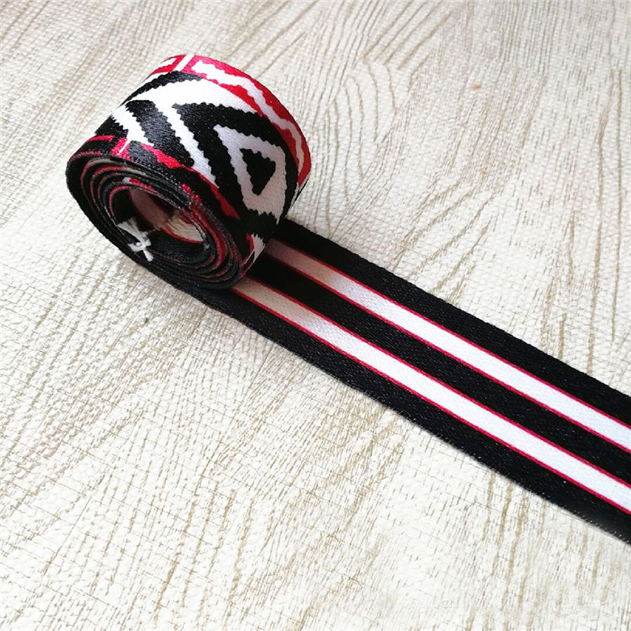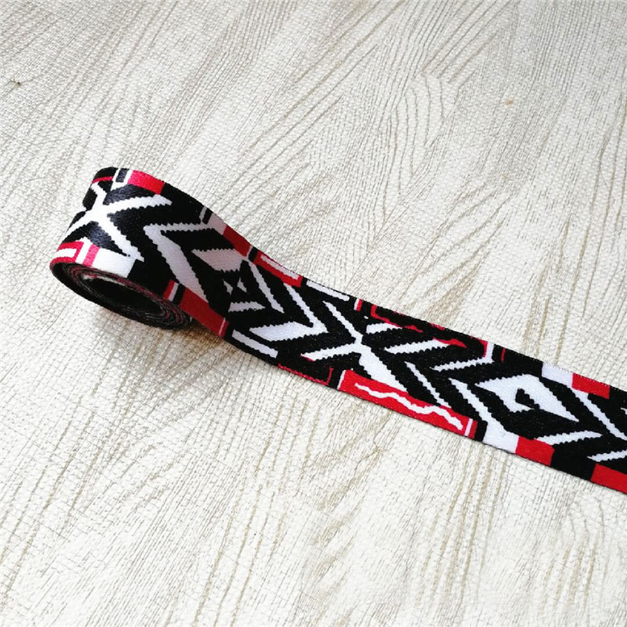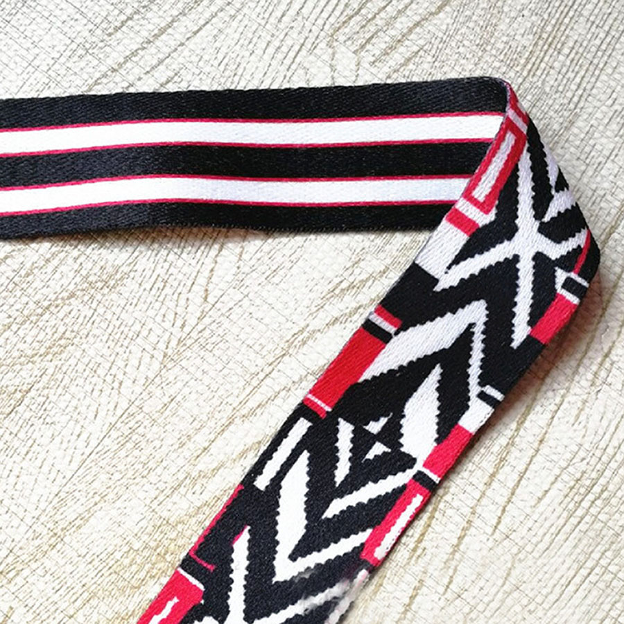 Лента ременная 38 мм Черно-красный орнамент пэ