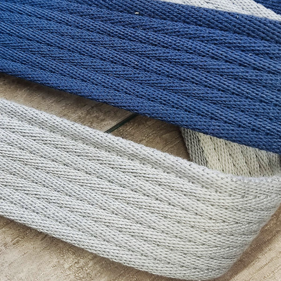 Плотная рельефная (под "лапшу") ременная лента, на обратной стороне интересная двухцветная изнанка. Модель представлена в синем и сером цветах.