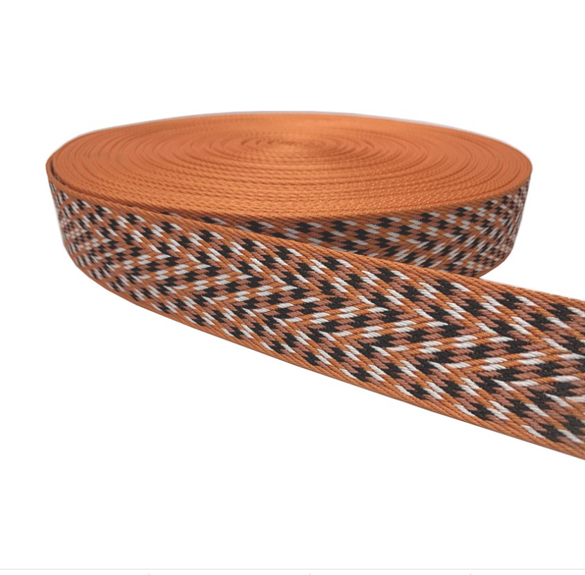 Стропа (ременная лента) из синтетических волокон - плотная, с оригинальным саржевым переплетеним из разноцветных нитей в ярком апельсиновом цвете.  Отличный летний вариант - выгодная цена по акции!