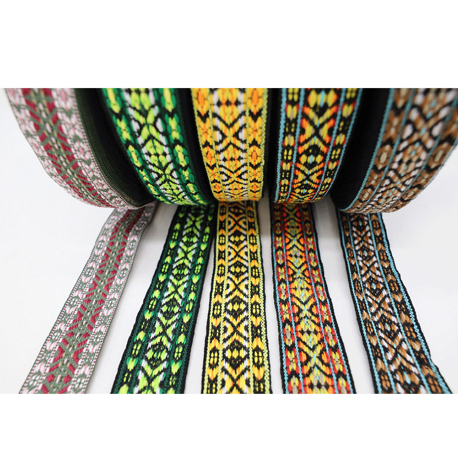 Текстильная галантерейная тесьма из синтетических волокон с вышивкой (рисунок односторонний). Яркое нарядное цветовое сочетание ленты украсит ваше изделие.