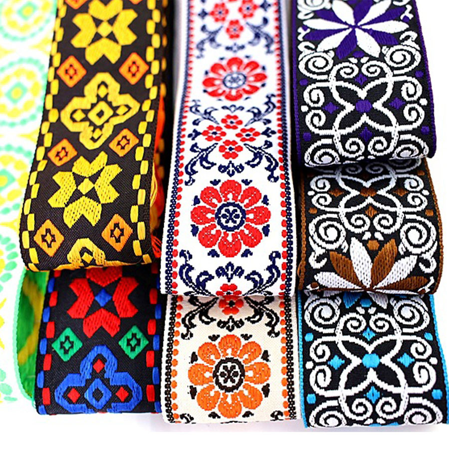 Текстильная галантерейная тесьма из синтетических волокон с вышивкой (рисунок односторонний). Яркое нарядное цветовое сочетание ленты украсит ваше изделие.