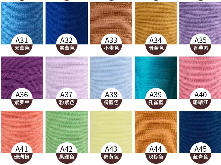 Яркие цвета, высокая износостойкость, Нить имеет отличное вощение, при шитье не раскручивается, очень прочная.