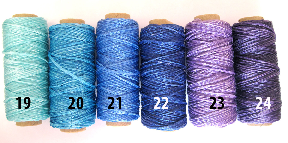 Специальные синтетические нитки для ручного шитья при работе с кожей. Нить плетеная, вощеная, плоская.