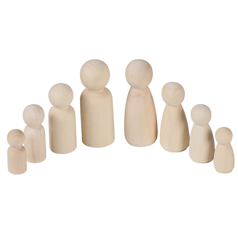 Фигурки Человечки изготовлены из древесины. В наличии мужские и женские фигурки разной высоты. Гладко отполированы. Без покрытия лаком и другими средствами.
