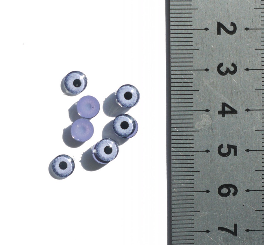 Пластиковые глазки голубые, с имитацией человеческой радужки глаза, приклеивающиеся , используются для изготовления кукол и игрушек.