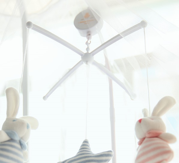 Мобили также могут монтироваться с  музыкальными механизмами - они снабжены крючками для соединения с кронштейном и крестовиной. Пока играет музыка, блок вращает крестовину.