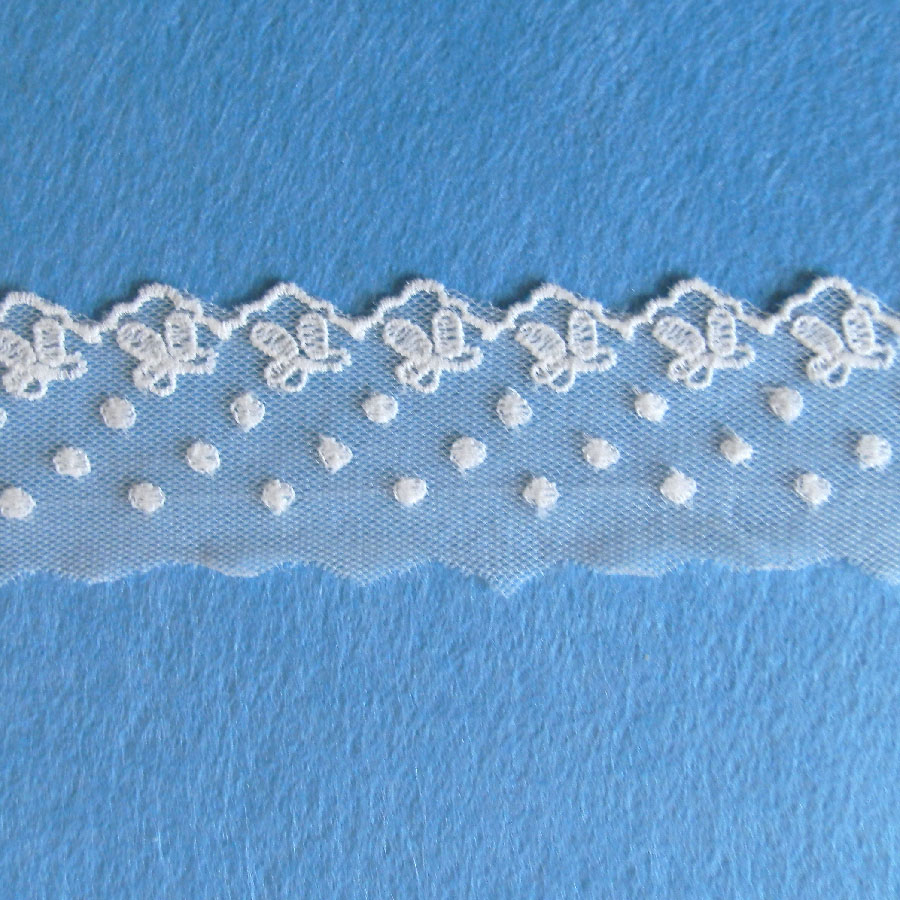 Белое шитье на сетке, изысканный нежный вышитый на мягком сетчатом материале рисунок. Декоративная кружевная тесьма подходит для самых разных видов рукоделия - при пошиве одежды, для декорирования в скрапбукинге, в куклоделии и т.д.