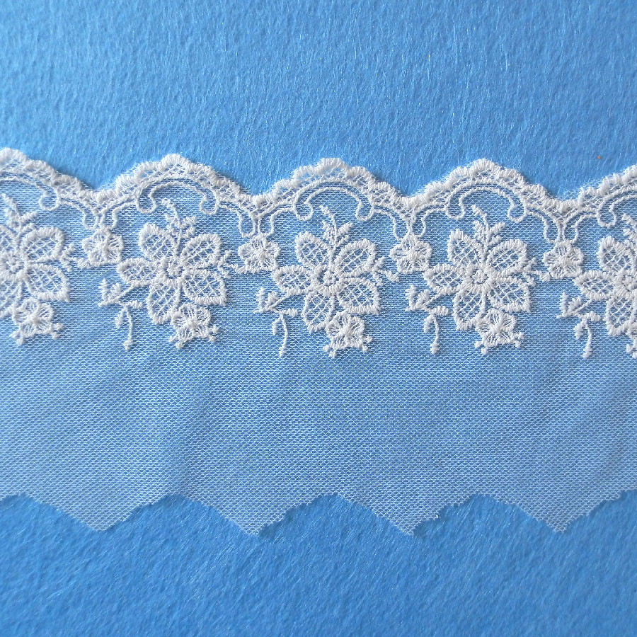 Белое шитье на сетке, изысканный нежный вышитый на мягком сетчатом материале рисунок. Декоративная кружевная тесьма подходит для самых разных видов рукоделия - при пошиве одежды, для декорирования в скрапбукинге, в куклоделии и т.д.